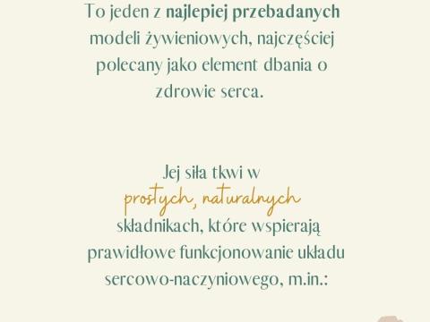 Na grafice zebra艂am kilka popularnych sk艂adnik贸w diety 艣r贸dziemnomorskiej i kr贸tko opisa艂am ich znaczenie w kontek艣cie prawid艂owego funkcjonowania uk艂adu sercowo-naczyniowego 鉂わ笍