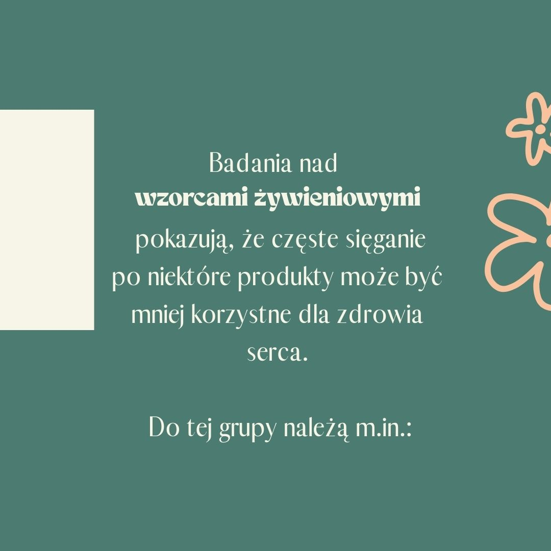 Badania nad wzorcami żywieniowymi pokazują, że częste sięganie po niektóre produkty może być mniej korzystne dla zdrowia serca. Do tej grupy należą m.in.: