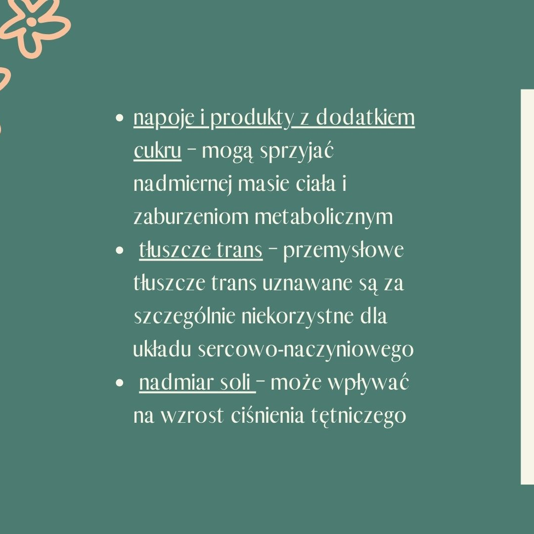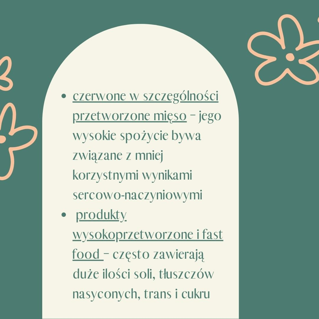 Badania nad wzorcami żywieniowymi pokazują, że częste sięganie po niektóre produkty może być mniej korzystne dla zdrowia serca. Do tej grupy należą m.in.: